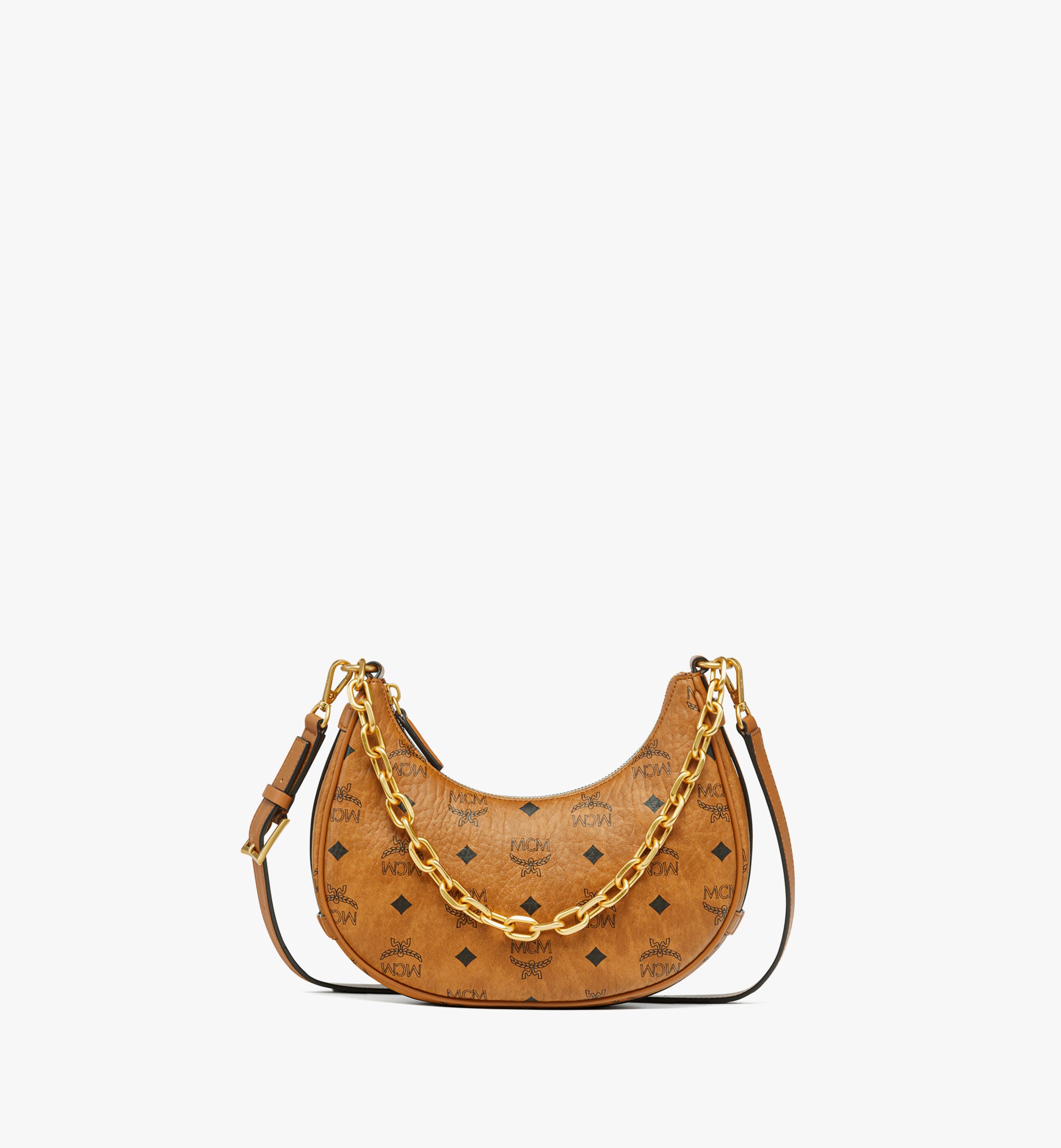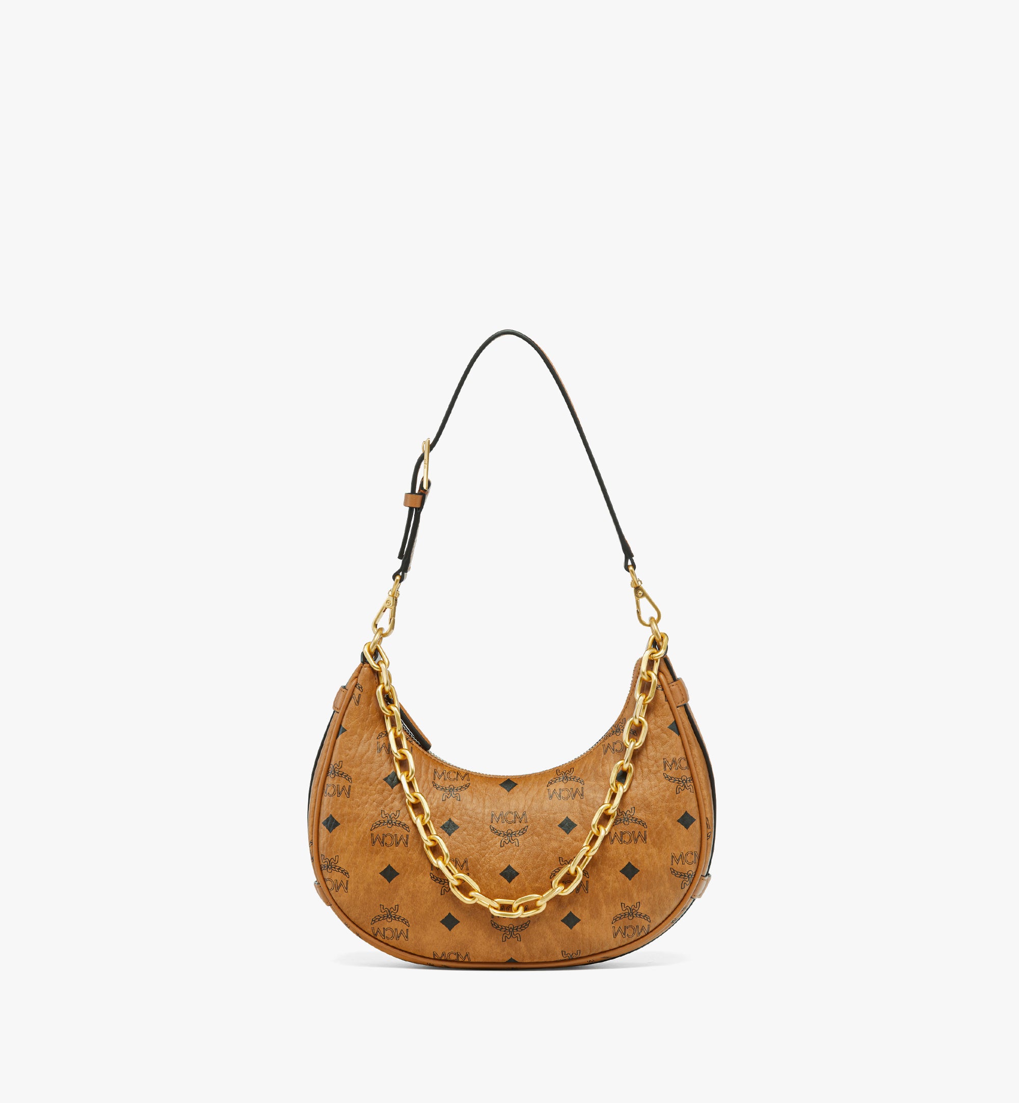 As elegant as its lunar inspiration, this curvilinear hobo bag is presented in a classic duet of signature Visetos canvas and natural leather. Carry by the chain handle or opt for hands-free carriage with the accompanying leather shoulder strap.